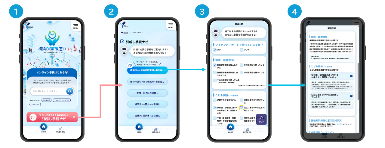そこで、引越し前に必要な情報をまとめて把握できるようにしたのが、横浜DIGITAL窓口の「引越し手続ナビ」です。